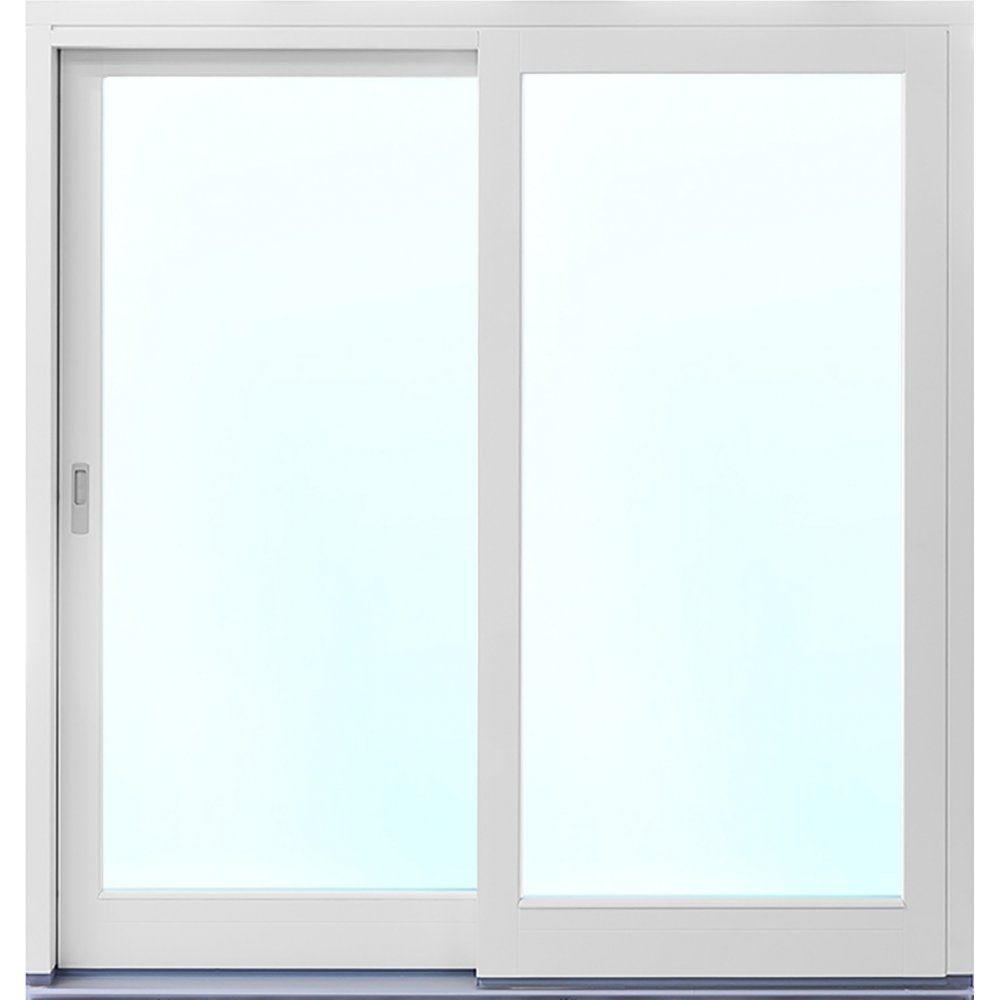 Ein zweiteiliger Fassadenabschnitt aus weiß lackiertem Aluminium, bei dem eines der Teile eine Schiebetür ist, um die Außen- und Innenräume einfach, sauber und stilvoll zu verbinden.