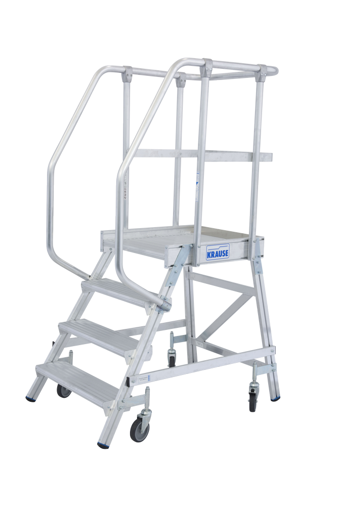 Diese Arbeitsplattform besteht aus Aluminium, was sie langlebig und stabil macht. Die Plattform hat Räder, die den Transport sehr einfach machen, die Plattform ist außerdem so geformt, dass sie in der Nähe von Regalen, Wänden und mehr stehen kann. Die Treppe hat 4 Stufen und eine Höhe von ca. 1,95 Meter, wodurch Sie eine Arbeitshöhe von ca. 2,95 Meter erreichen können.