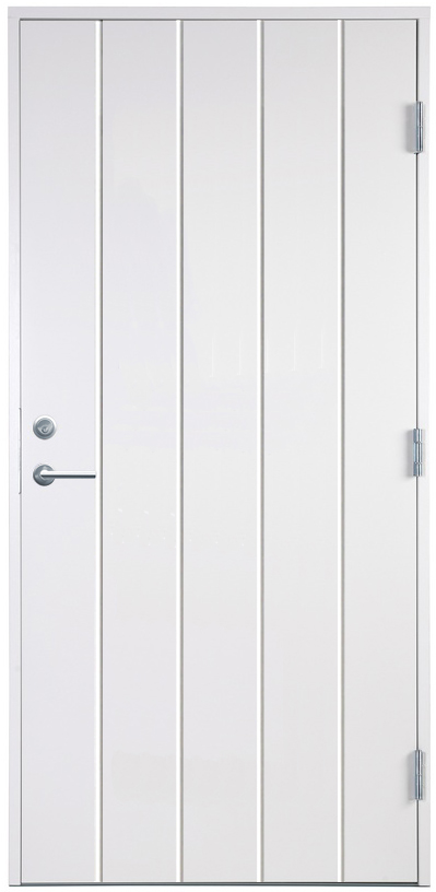 Ytterdörr Göteborg hat mit seinen vertikalen Streifen ein schlichtes, stilvolles Design. Die Tür lässt sich leicht an verschiedene Fassaden anpassen und eignet sich beispielsweise perfekt für eine Garage oder einen Abstellraum, in denen Sie Privatsphäre wünschen. Auch ohne Fenster ist die Tür sehr dicht und energieeffizient.