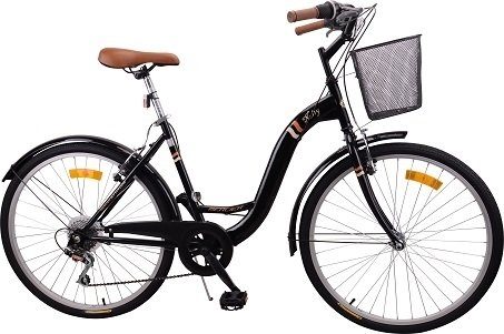 Der braune Komfortsattel sorgt nicht nur für eine elegante Note, sondern sorgt auch dafür, dass Sie während der gesamten Radtour bequem sitzen. Darüber hinaus ist ein praktischer Fahrradkorb im Lieferumfang enthalten, mit dem Sie vom Lebensmitteleinkauf bis hin zu persönlichen Gegenständen problemlos alles mitnehmen können.