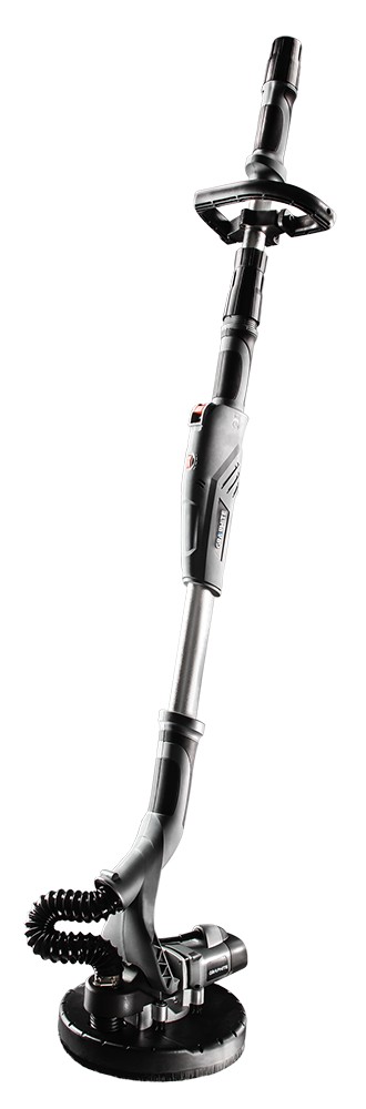 Der Ausleger der Schleifmaschine ist im Bereich von 1.100 bis 2.000 mm verstellbar. Staubabsaugung mit Aufsatz für Staubsauger garantiert einen sauberen und aufgeräumten Arbeitsplatz. Darüber hinaus ist der Schleifer mit einem verstellbaren Zusatzhandgriff und einem stufenlos verstellbaren Kopf gegen die Arbeitsunterlage ausgestattet. Der Griff hat Gummipolster für Komfort und Stabilität beim Schleifen.