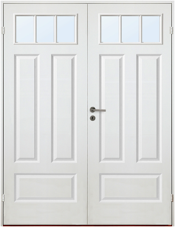 Weiß lackierte Doppeltür in klassischer Spiegelteilung für gute Lichtdurchlässigkeit.