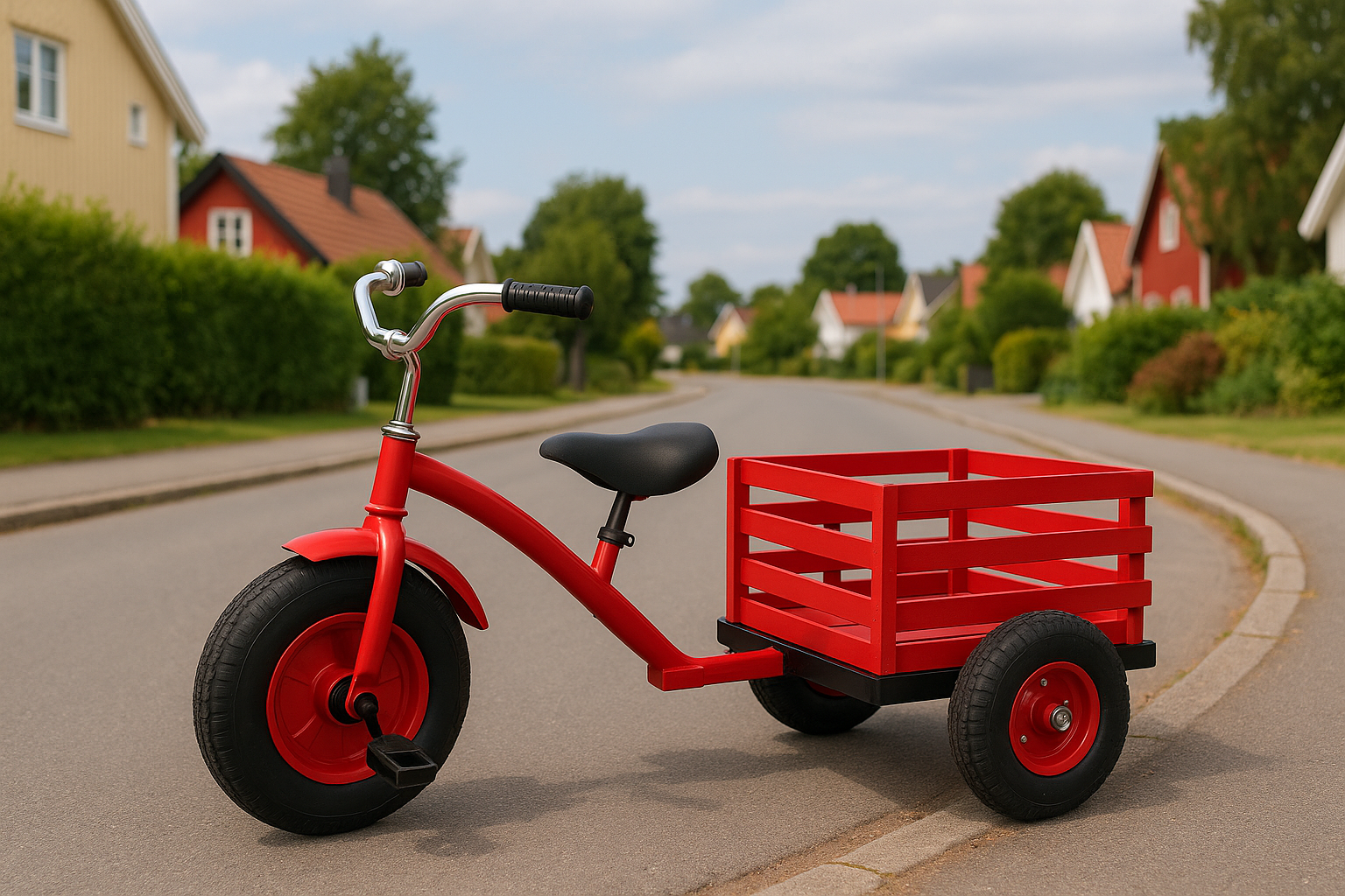 Dank des verstellbaren Lenkers und der faltbaren Karosserie passt sich das Dreirad problemlos den Bedürfnissen des Kindes an und lässt sich bei Nichtgebrauch einfach verstauen. Das geräumige Holzbett im hinteren Bereich lädt zu fantasievollen Abenteuern ein, in denen Spielsachen, Kuscheltiere oder andere Schätze bequem transportiert werden können.
