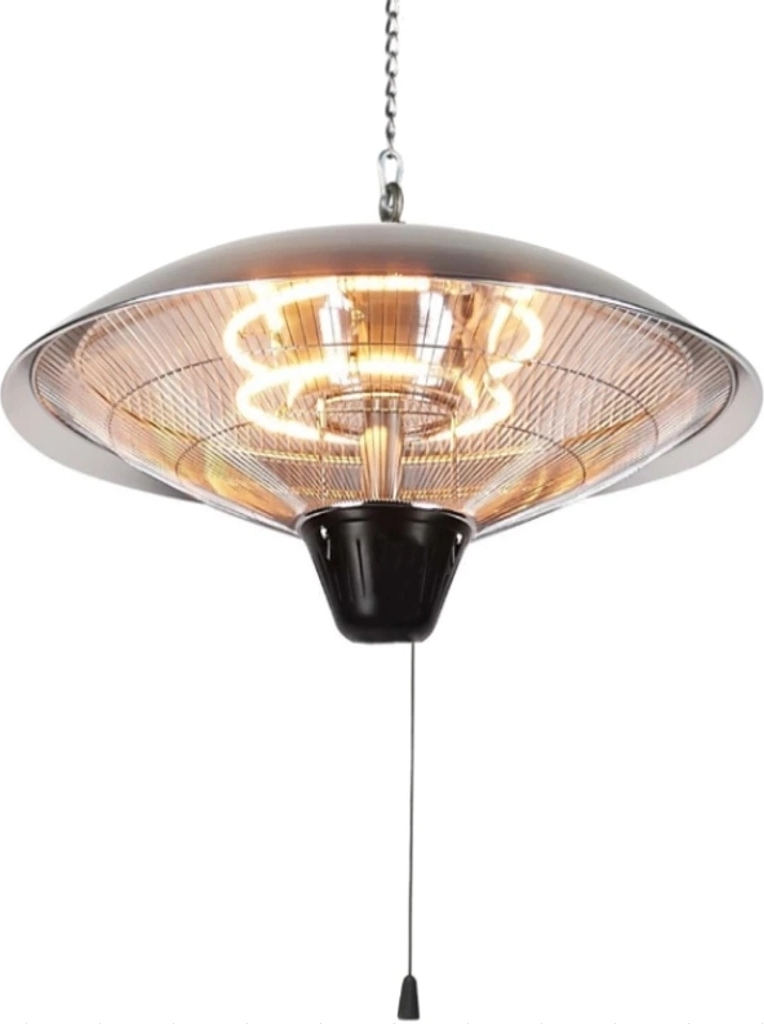 Hängender Infrarotstrahler geeignet für den Innen- und Außenbereich. Es kann daher zum Beispiel unter dem Dach von überdachten Gastgarten, Pavillons und überall dort eingesetzt werden, wo es unter dem Dach platziert wird, damit es nicht Regen oder Schnee ausgesetzt ist.