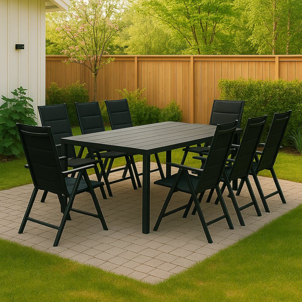 Essgruppe für den Außenbereich - Las Vegas & Asta | Schwarzes Aluminium | Stühle mit 6 Positionen