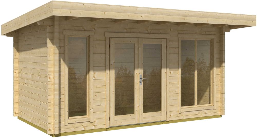 Dach und Boden bestehen aus 18 mm Rohblech, dieses ist im Bausatz enthalten. Behandelte Trageleinen für das Fundament sind ebenfalls enthalten. Das Fundament müssen Sie selbst herstellen, Materialien dafür sind nicht im Lieferumfang enthalten. Wie das Fundament hergestellt wird, hängt von den Bodenverhältnissen, dem Aussehen des Hauses und Ihren Vorlieben ab. Es kann entweder eine Platte gegossen oder ein Sockelsockel auf beispielsweise Gartenfliesen oder Leichtklinker verwendet werden.