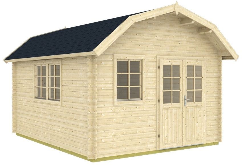 - Türen und Fenster: Aus extra getrockneter laminierter Fichte. Fenster mit einem Glas, nach innen und außen öffnend. Alle Komponenten für die Installation sind enthalten.