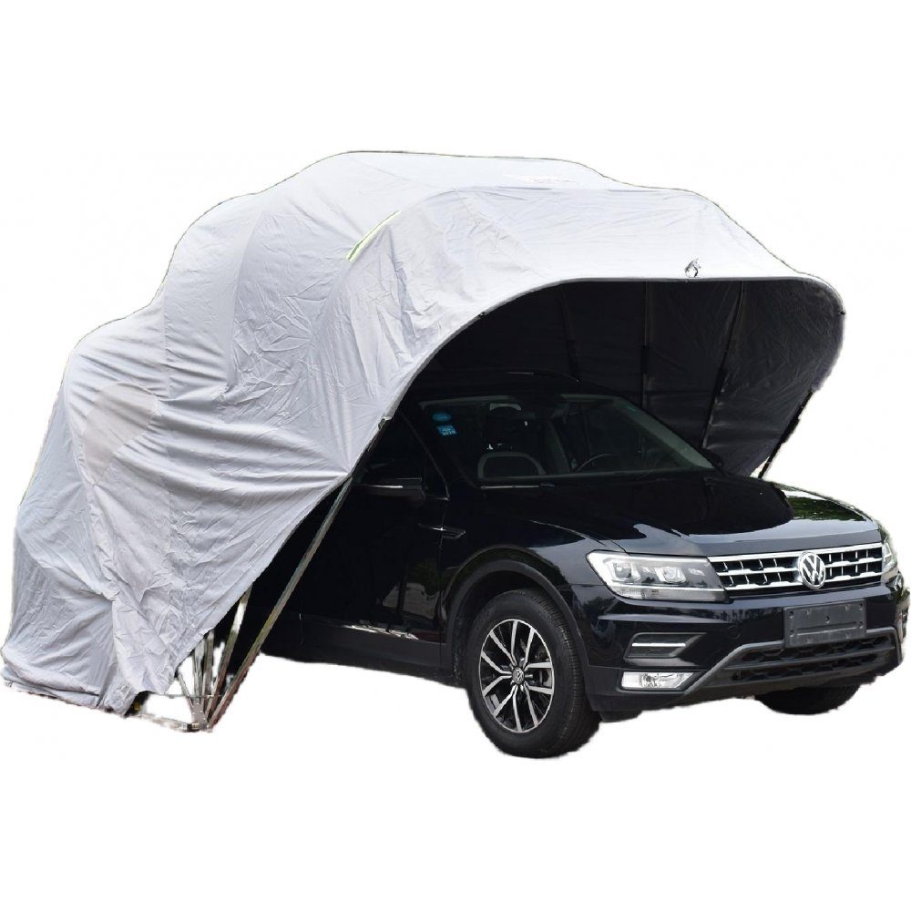 Garagenzelt in Grau, eine praktische und langlebige Lösung, um Ihr Auto vor Witterungseinflüssen zu schützen. Die zusammenklappbare Garage besteht aus robusten und umweltfreundlichen Materialien wie PU-beschichtetem 600D-Oxford-Stoff und Edelstahl, was sowohl für Stabilität als auch für eine lange Lebensdauer sorgt. Dank der einfachen Konstruktion und des flexiblen Formats ist das Zelt einfach aufzubauen und praktisch in der Anwendung.