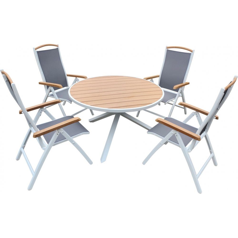 Garten-Essgruppe Pisa Ø150 - Weiß, Eichenplatte