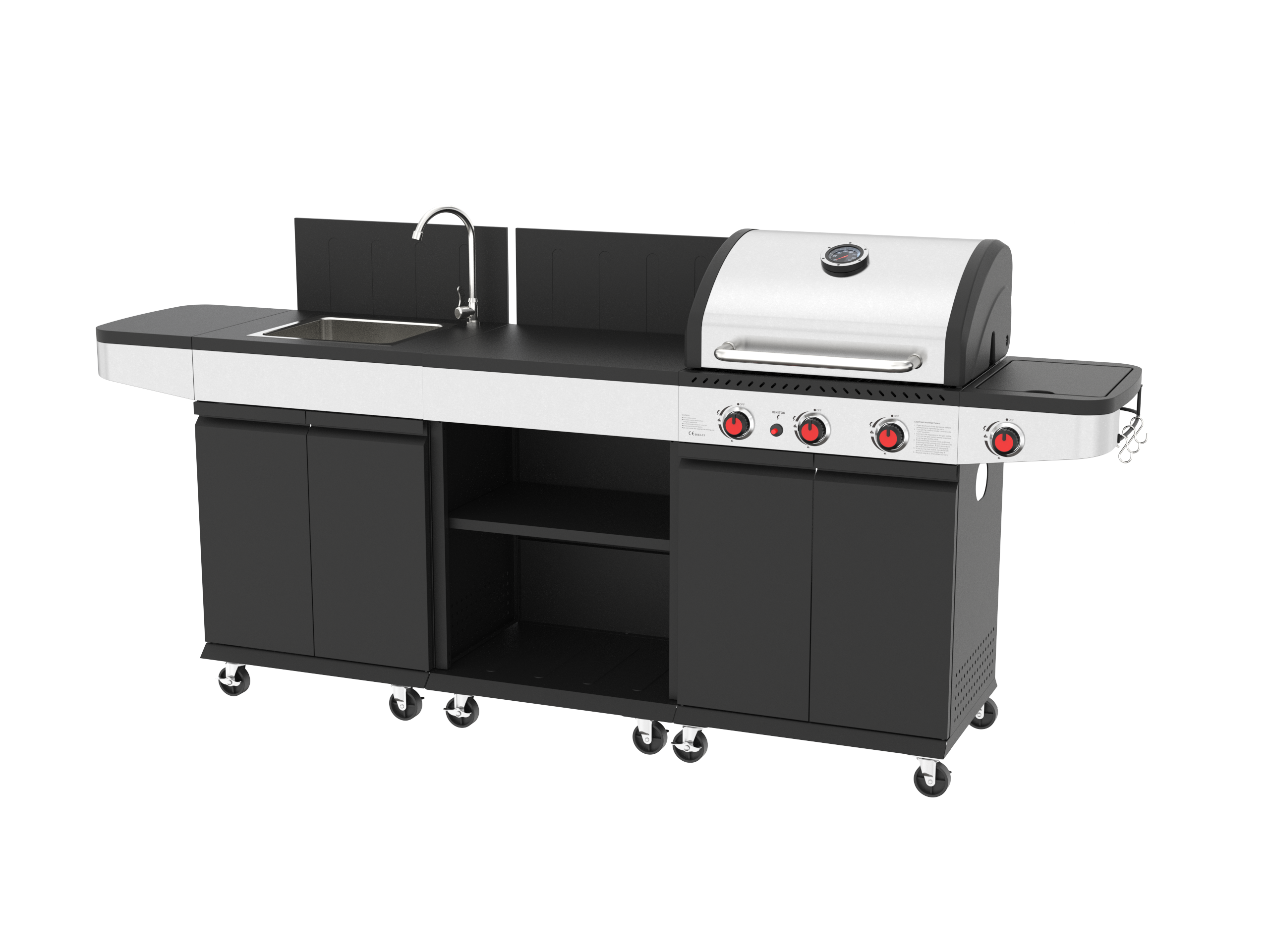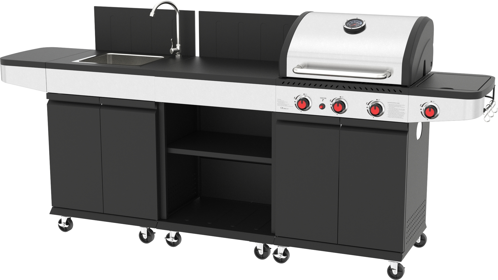 - In 3 Teile unterteilt: Gasgrill, Werkbank und Spüle