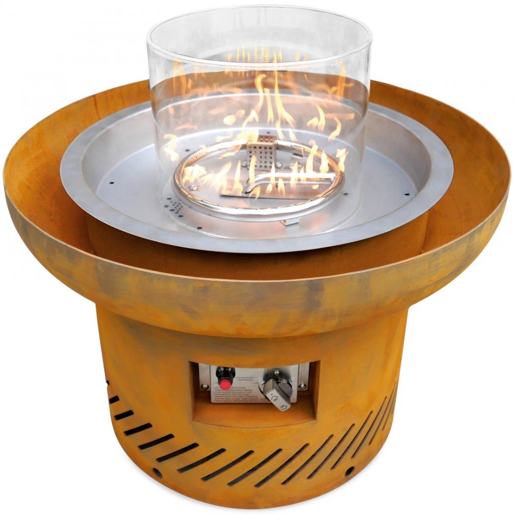 Der Kamin besteht aus 3 mm starkem Cortenstahl, auch als rostfreier Stahl bekannt, und entwickelt mit der Zeit eine schützende Rostpatina, die jedes Stück zu einem Unikat macht. Die Oberfläche ist pflegeleicht und witterungsbeständig. Dank der wärmereflektierenden Eigenschaften des Stahls dient der Kamin an kühlen Abenden als effektive Wärmequelle.