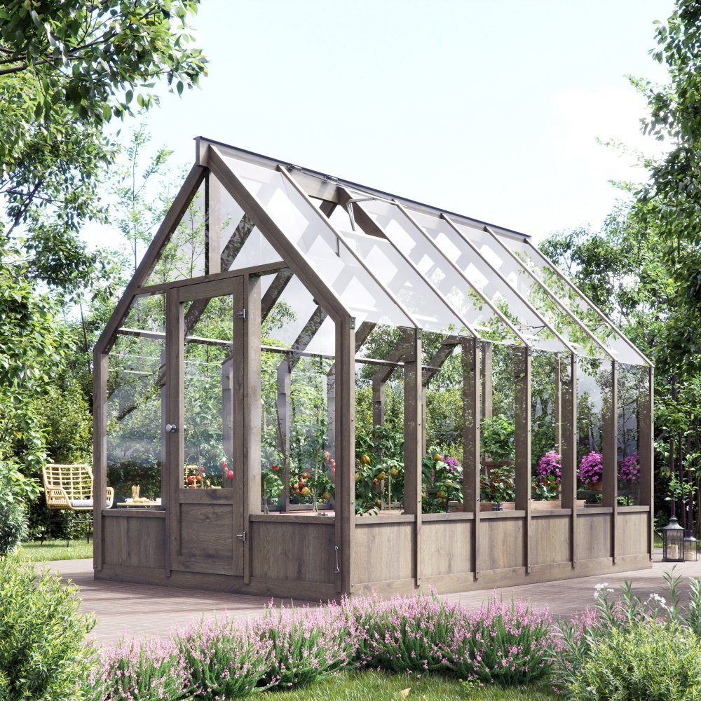 - Gewächshaus aus Holz, 8,2 m² - Sicherheitsglas & Lüftungsfenster