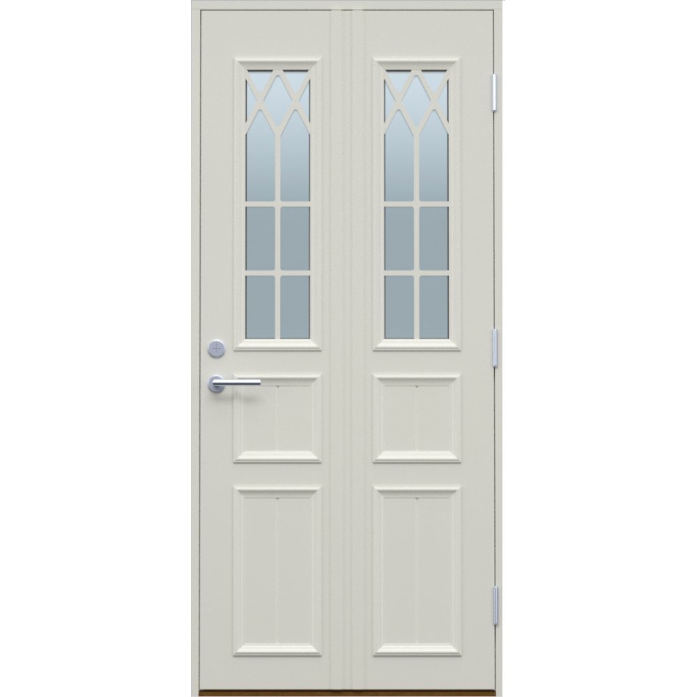 Diese klassische Tür bietet viele Optionen, darunter Glasdesign, Größe und vieles mehr, um sie an Ihre Bedürfnisse und Wünsche anzupassen. Väderö passt sowohl zur modernen als auch zur klassischen oder traditionellen Architektur.