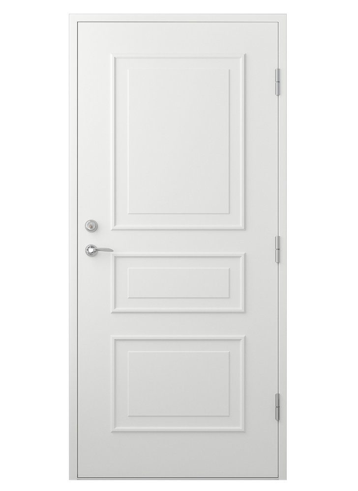 Die Tür hat einen Rahmen aus doppelt verleimtem Rahmenholz in Kiefer. Damit der Rahmen so stark wie möglich ist und nicht zusammenbricht, werden schmalere Kiefernstücke zusammengeleimt. Der Rahmen hat eine moderne Wärmedämmung im Inneren des Rahmens aus 50 mm Schaumkunststoff (EPS 200). Ein 0,4 mm starkes Aluminiumblech bedeckt sowohl die Innen- als auch die Außenseite für maximale Stabilität und Dichtigkeit. Auf diesem Aluminiumblech hat die Tür eine speziell entwickelte HDF-Platte , die wasserdicht und an unser Klima angepasst ist. Die Türschwelle ist geölt und aus der harten Holzart Eiche gefertigt, die sowohl attraktiv ist als auch viel rauer Behandlung standhält. Zusätzlich ist die Schwelle mit einem außenliegenden Aluminiumstreifen zum Schutz vor Feuchtigkeit ausgestattet. Der Türrahmen ist im Lieferumfang enthalten und aus Kiefernholz, das in der gleichen Farbe wie das Türblatt erhältlich ist.