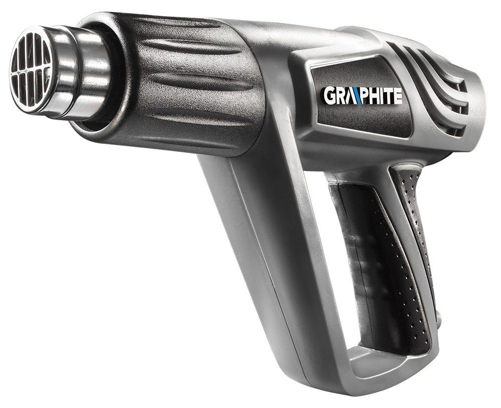Die Heißluftpistole ist leicht und komfortabel und hat einen mit Gummi überzogenen Griff für guten Halt. Das Design des Werkzeugs ermöglicht eine vertikale Positionierung des Heißluftgebläses. Die Heißluftpistole verfügt über wiederverwendbare Hitzeschilde, die eine versehentliche Überhitzung verhindern.