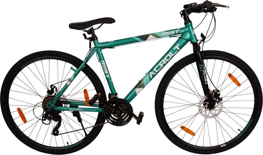 Sportliches Hybridrad mit angepasstem Fahrverhalten auf Landstraßen, Stadtstraßen und Radwegen. Die Reifen sind 700C Slim mit einem wasserabweisenden Muster und einer Kontaktfläche mit geringer Reibung. Das Fahrrad erreicht leicht hohe Geschwindigkeiten und bringt Sie schnell dorthin, wo Sie hin müssen. Mit den vorderen und hinteren Scheibenbremsen des Fahrrads können Sie sich sicher fühlen, da sie sanftes und angepasstes Bremsen liefern.