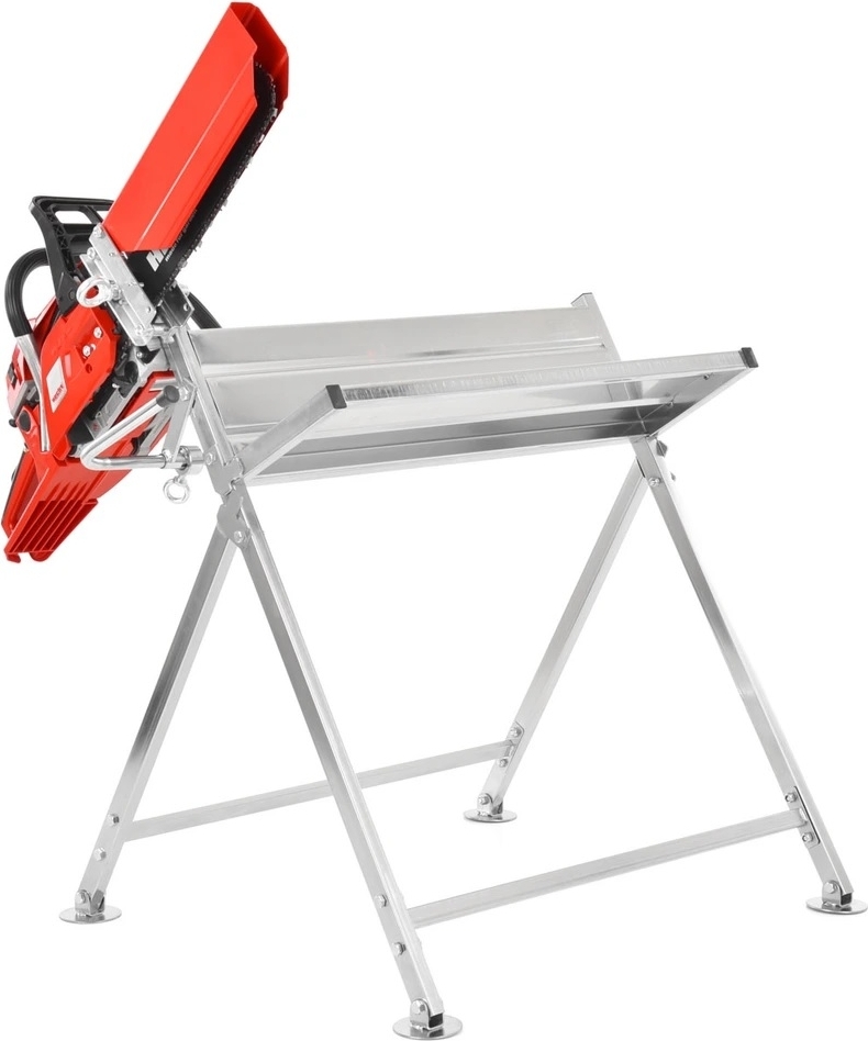 Geeignet für alle Arten von Kettensägen mit einem Gewicht von bis zu 7 kg und einer Schwertlänge von bis zu 45 cm. Es ist möglich, Holz bis zu einer Länge von 180 cm mit einem Durchmesser von 25 bis 230 mm zu schneiden. Die maximale Belastung des Ständers beträgt 120 kg.