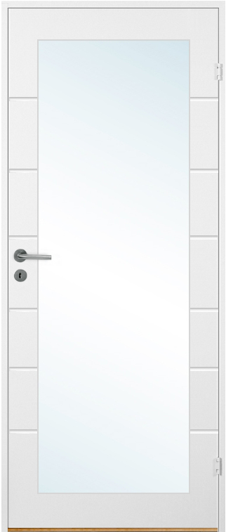 Verwandeln Sie Ihr Zuhause mit unserer eleganten Innentür Bornholm, ausgestattet mit Rillendekor und einer Glasscheibe, die für hervorragende Lichtdurchlässigkeit sorgt. Die Innentür Bornholm vereint Stil und Funktion auf perfekte Weise und schafft eine offene und einladende Atmosphäre in Ihrem Zuhause. Einer der vielen Vorteile dieser Tür ist die flexible Aufhängelösung. Dank der symmetrischen Einlegescharniere müssen Sie keine Vorentscheidung über den Türanschlag (rechts oder links) treffen. Mit einem einfachen Handgriff können Sie den Verriegelungskolben drehen und haben so die Freiheit, beim Einbau zu entscheiden, in welche Richtung die Tür hängen soll.