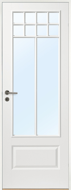 Unsere Innentür Gotland in klassischer Spiegelaufteilung ist eine hervorragende Lösung für alle, die eine zeitlose und elegante Tür mit hoher Lichtdurchlässigkeit suchen. Diese Tür hat ein traditionelles Design, das sowohl in moderne als auch klassische Häuser perfekt passt. Die Spiegelaufteilung der Tür verleiht ihr nicht nur ein stilvolles und klassisches Aussehen, sondern trägt auch dazu bei, den Lichteinfall in den Raum zu maximieren. Dadurch entsteht eine offene und luftige Atmosphäre, die besonders in kleineren Räumen wertvoll ist. Die weiße Oberfläche reflektiert das Licht und lässt den Raum heller und einladender wirken.