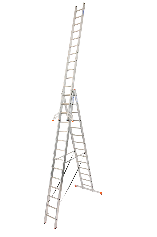 Sie können diese multifunktionale Aluminiumleiter für eine Vielzahl von Arbeiten verwenden. Sie können die Leiter als Schiebeleiter, Anlegeleiter oder Trittleiter verwenden. Die Leiter ist in 3 Teile geteilt, jedes der Teile hat 14 Stufen und eine Länge von 3,95 Metern, was Ihnen eine Arbeitshöhe von bis zu ca. 10,90 Metern ermöglicht und die Leiter hat eine Tragfähigkeit von 150 kg. Die Leiter hat einen starken Anti-Rutsch-Schutz, der sie stabil und sicher macht.