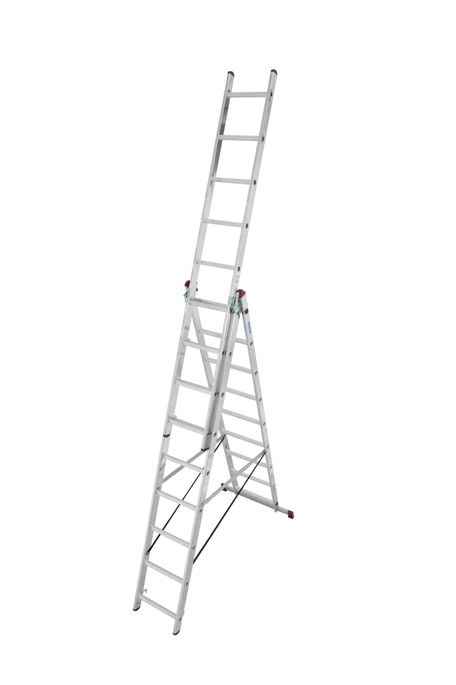 Diese multifunktionale Alu-Leiter können Sie vielseitig einsetzen und mit der praktischen Treppenfunktion auch auf Treppen und anderen unebenen Flächen einsetzen. Sie können die Leiter als Schiebeleiter, Anlegeleiter oder Trittleiter verwenden. Die Leiter ist in 3 Teile geteilt, jedes der Teile hat 9 Stufen und eine Länge von 2,50 Meter, was Ihnen eine Arbeitshöhe von bis zu ca. 6,20 Meter ermöglicht und die Leiter hat eine Tragfähigkeit von 150 kg. Die Leiter hat einen starken Anti-Rutsch-Schutz, der sie stabil und sicher macht.