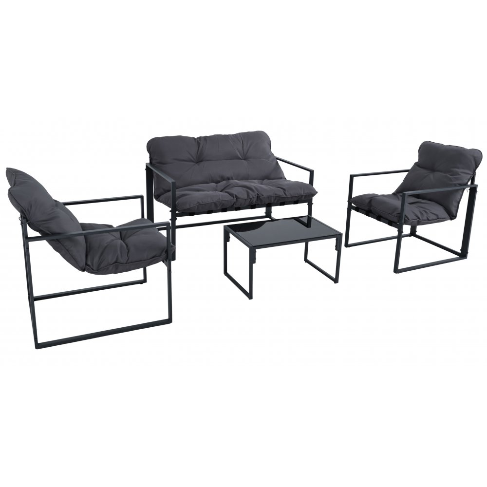 Lounge-Set mit Sesseln und Couchtisch, Schwarz/Grau - Kreta