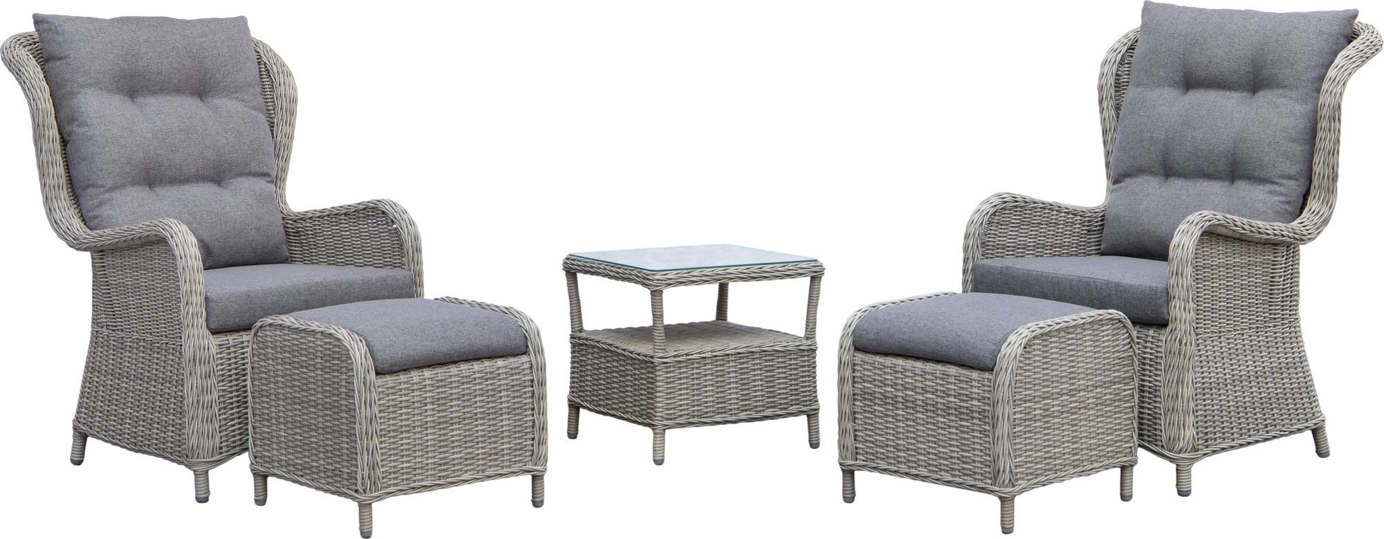 Milano - Outdoormöbel-Set mit zwei Sesseln, zwei Fußhockern und Beistelltisch