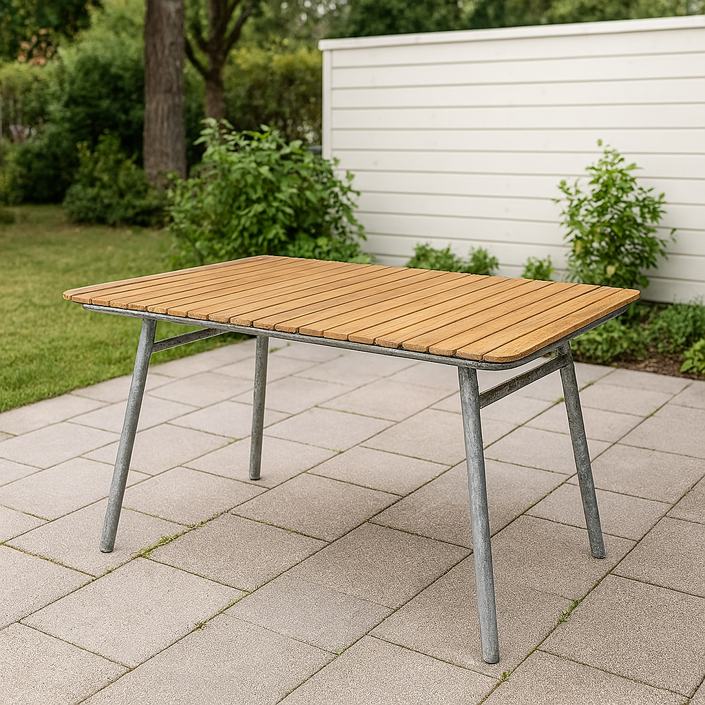 Möllan ist eine exklusive Serie im klassischen skandinavischen Design. Die Outdoor-Gruppe besteht aus verzinktem Stahl mit massivem, geöltem Teakholz. Dies macht die Outdoor-Gruppe wetterfest und langlebig, um mit der Umgebung im Freien fertig zu werden.