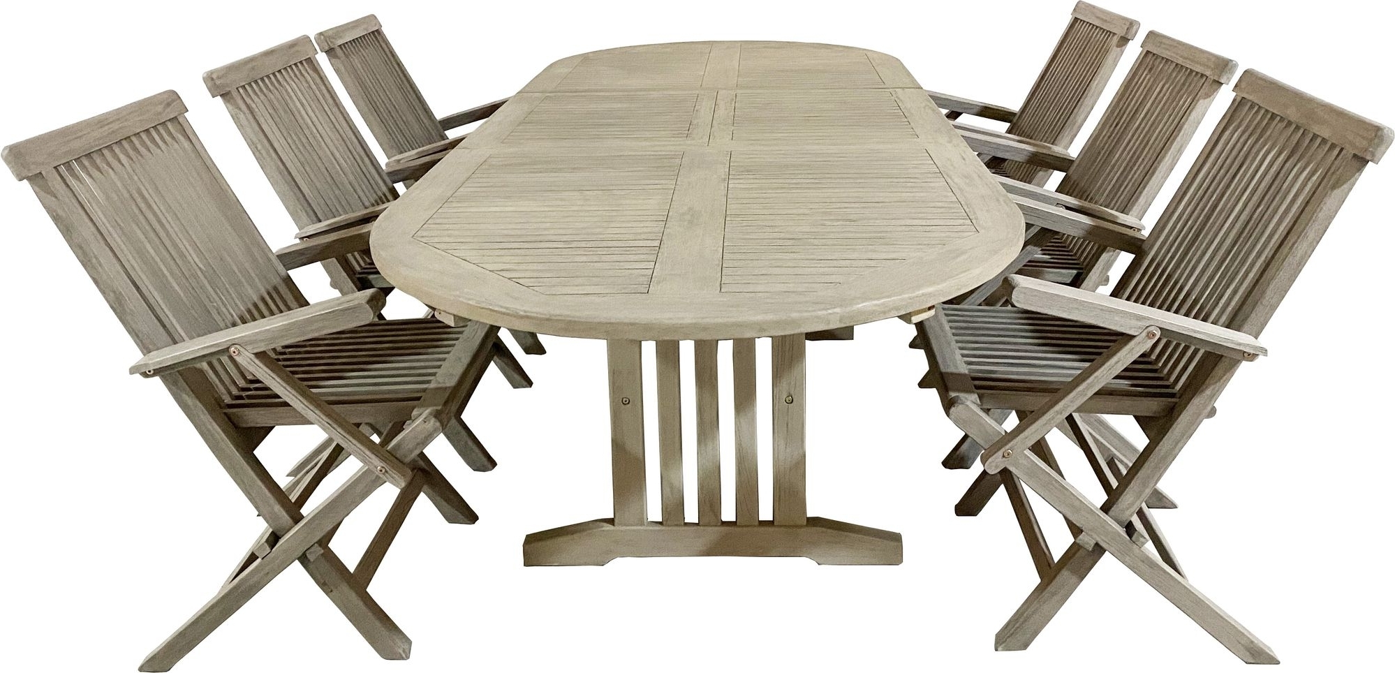 Wenn Sie die Teakmöbel durch Ölen mit Teaköl behandeln, bleibt der teakbraune Farbton erhalten. Lässt man sie unbehandelt draußen stehen, bekommen sie eine schöne graue Patina. Wie bei allen Holzmöbeln ist es wichtig, sie vor dem Ölen der Möbel von Wasser und anderen Flüssigkeiten sauber zu trocknen.
