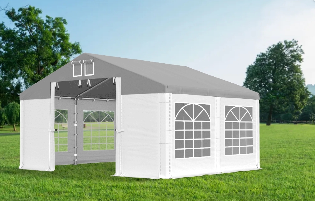 Bei unseren Partyzelten können Sie zwischen 2 verschiedenen Dachtypen wählen. Ein Standarddach mit einer Dicke von 560 g/m2.