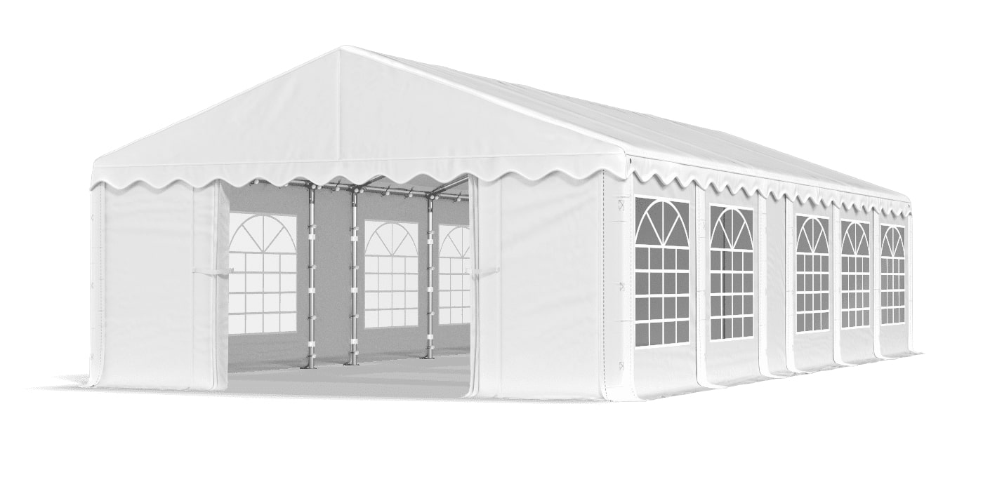 Die Seitenwände bestehen aus dicker und langlebiger PE-Plane 240 g/m² mit großem funktionalen Zierfenster mit Lamellen. Die Höhe der Wände beträgt 2 m. Durch die auf jedem Zwei-Meter-Segment angebrachten Fenster erhält das Zelt ein optisch ansprechenderes Design und eignet sich somit perfekt für Studentenfeste, Partys, Feiern sowie Ausstellungen und Veranstaltungen. Die Fenster lassen Tageslicht eindringen, was beim Aufenthalt im Freien ein angenehmes und entspannendes Gefühl vermittelt und gleichzeitig vor Ungeziefer und unerwünschter Witterung schützt. Die Wände werden an jedem Zwei-Meter-Segment mit speziellen Gummibändern befestigt, was es auch ermöglicht, Wände für zusätzliche Öffnungen frei zu entfernen, sodass Sie sie an Ihre eigenen Bedürfnisse anpassen können.