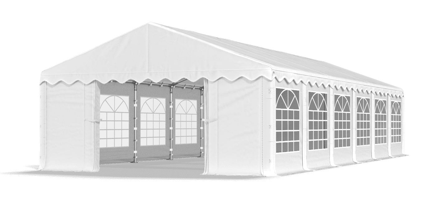 Die Seitenwände bestehen aus dicker und langlebiger PE-Plane 240 g/m² mit großem funktionalen Zierfenster mit Lamellen. Die Höhe der Wände beträgt 2 m. Durch die auf jedem Zwei-Meter-Segment angebrachten Fenster erhält das Zelt ein optisch ansprechenderes Design und eignet sich somit perfekt für Studentenfeste, Partys, Feiern sowie Ausstellungen und Veranstaltungen. Die Fenster lassen Tageslicht eindringen, was beim Aufenthalt im Freien ein angenehmes und entspannendes Gefühl vermittelt und gleichzeitig vor Ungeziefer und unerwünschter Witterung schützt. Die Wände werden an jedem Zwei-Meter-Segment mit speziellen Gummibändern befestigt, was es auch ermöglicht, Wände für zusätzliche Öffnungen frei zu entfernen, sodass Sie sie an Ihre eigenen Bedürfnisse anpassen können.