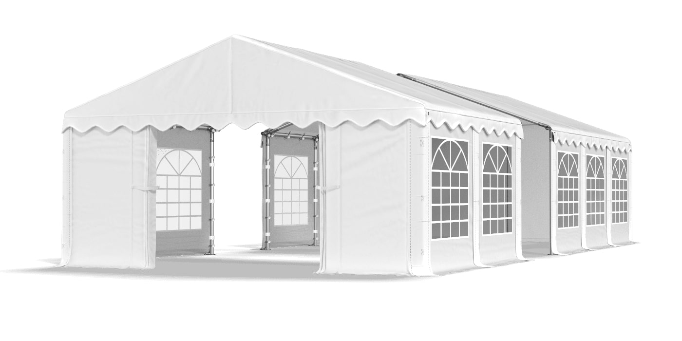 Die Seitenwände bestehen aus dicker und langlebiger PE-Plane 240 g/m² mit großem funktionalen Zierfenster mit Lamellen. Die Höhe der Wände beträgt 2 m. Durch die auf jedem Zwei-Meter-Segment angebrachten Fenster erhält das Zelt ein optisch ansprechenderes Design und eignet sich somit perfekt für Studentenfeste, Partys, Feiern sowie Ausstellungen und Veranstaltungen. Die Fenster lassen Tageslicht eindringen, was beim Aufenthalt im Freien ein angenehmes und entspannendes Gefühl vermittelt und gleichzeitig vor Ungeziefer und unerwünschter Witterung schützt. Die Wände werden an jedem Zwei-Meter-Segment mit speziellen Gummibändern befestigt, was es auch ermöglicht, Wände für zusätzliche Öffnungen frei zu entfernen, sodass Sie sie an Ihre eigenen Bedürfnisse anpassen können.