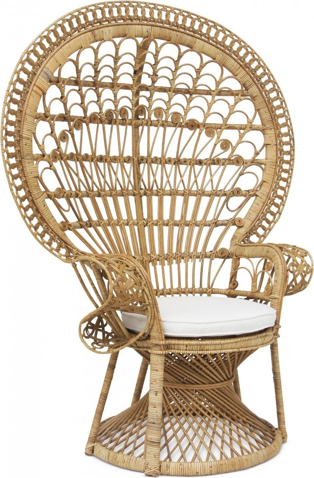 Erleben Sie ein Gefühl von Eleganz mit unserem Pfauensessel, einem klassischen Möbelstück aus geflochtenem und gebundenem Naturrattan. Diese erstaunliche Handarbeit gewährleistet lang anhaltende Haltbarkeit und Schönheit. Der Sessel ist mit einem runden Sitzkissen aus leichtem Stoff ausgestattet, das sowohl Komfort bietet als auch Ihrem Interieur eine stilvolle Note verleiht.