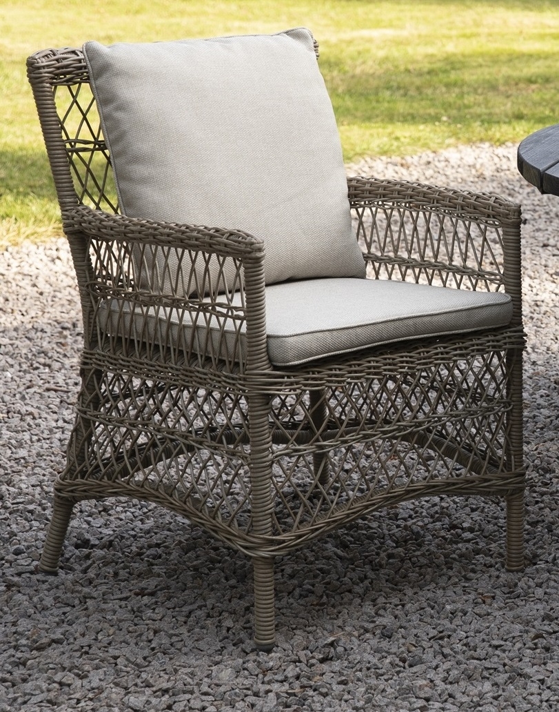 Provence Gartenstuhl aus künstlichem Rattan, Naturfarbe + Textilimprägnierung für Outdoormöbel