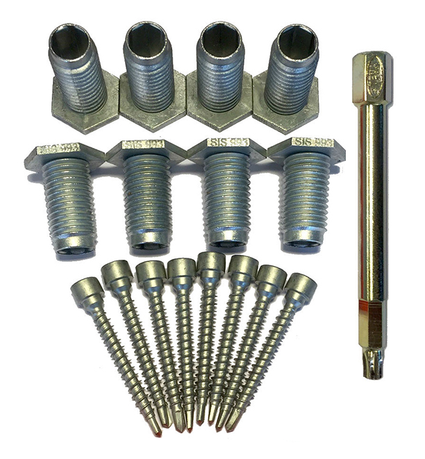 - Dübellose Schrauben für die Rahmenhülsen (für Holz- oder Betonwand)