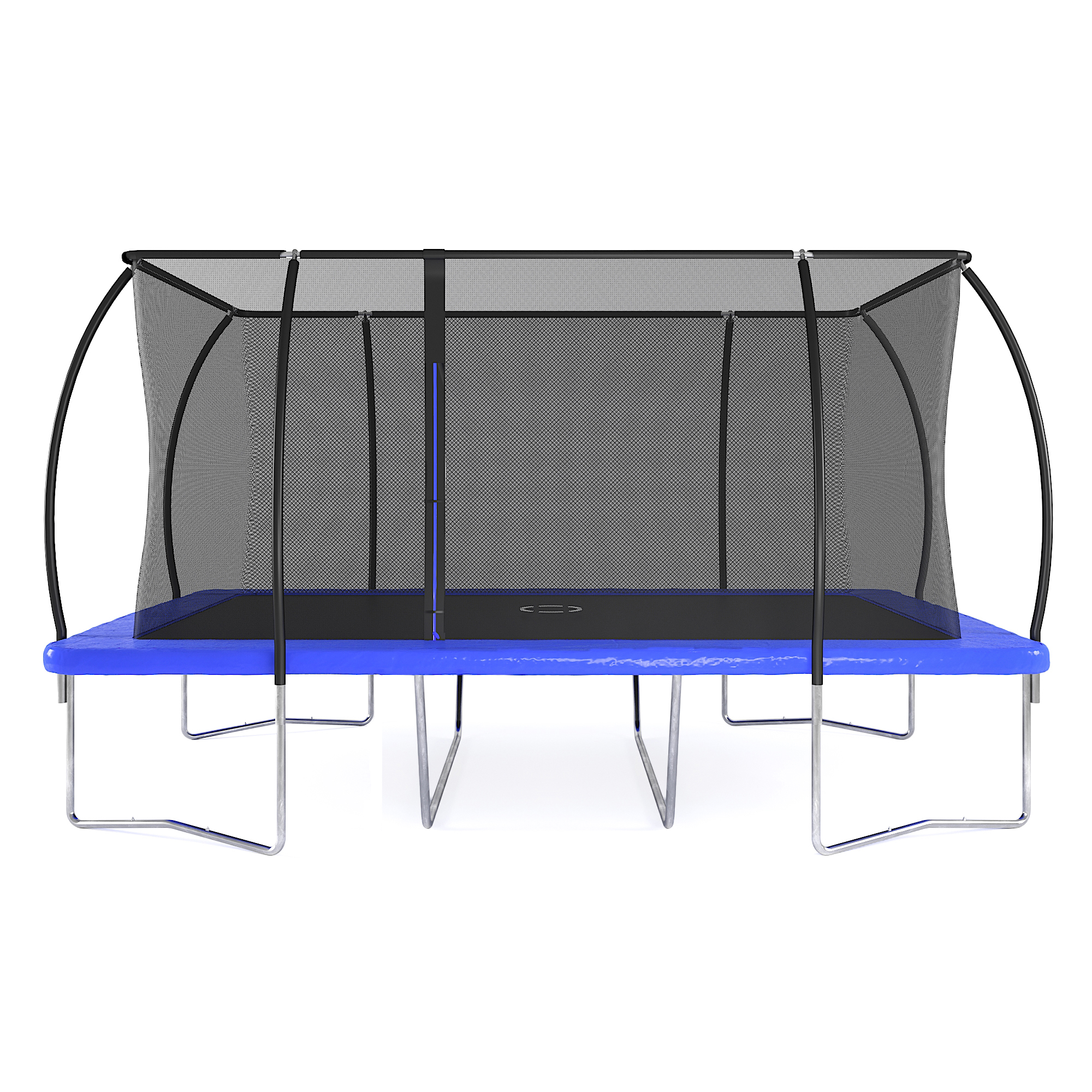 Dieses große rechteckige Trampolin von 305 x 457 cm bietet Ihnen viel Platz und die Möglichkeit, Purzelbäume und andere Dinge zu vollführen, ohne an die Seiten zu stoßen. Die 42 mm dicken Rahmen sind für einen effektiven Rostschutz sowohl außen als auch innen verzinkt. Der Kantenschutz besteht aus PVC und PE mit 20 mm Schaumstoff, um das Betreten bequemer zu machen und Sie davor zu schützen, dass Ihre Füße und Beine zwischen den Federn eingeklemmt werden. Zu Ihrer Sicherheit ist auch ein Sicherheitsnetz aus PE enthalten und hat eine Höhe von 180 cm. Die Matte selbst ist UV-beständig, um mit Außenumgebungen fertig zu werden, und hat eine Höhe von 89 cm, daher wird eine Leiter oder ähnliches empfohlen, um auf die Matte zu gelangen.