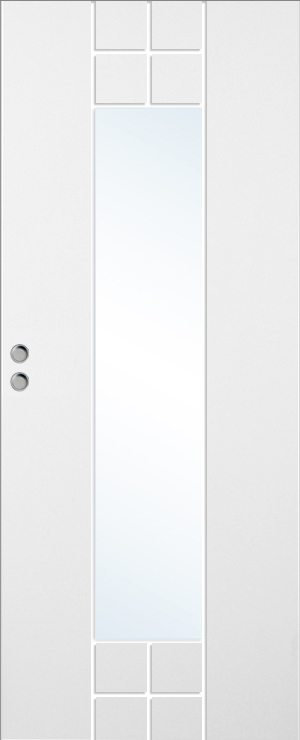 Schiebetür Bornholm ist eine lackierte, kompakte Schiebetür mit nutgefrästem Dekor und Glasscheibe für viel Lichtdurchlässigkeit.