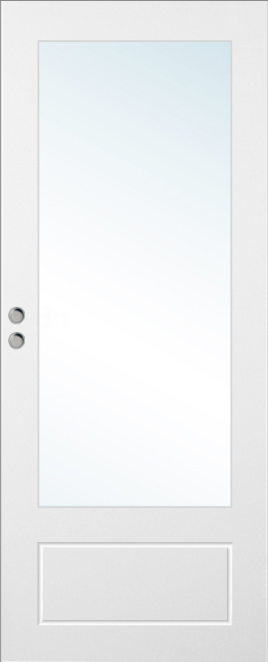 Lackierte Kompaktschiebetür mit Rillenfräsdekor und Glasscheibe für viel Lichtdurchlässigkeit.