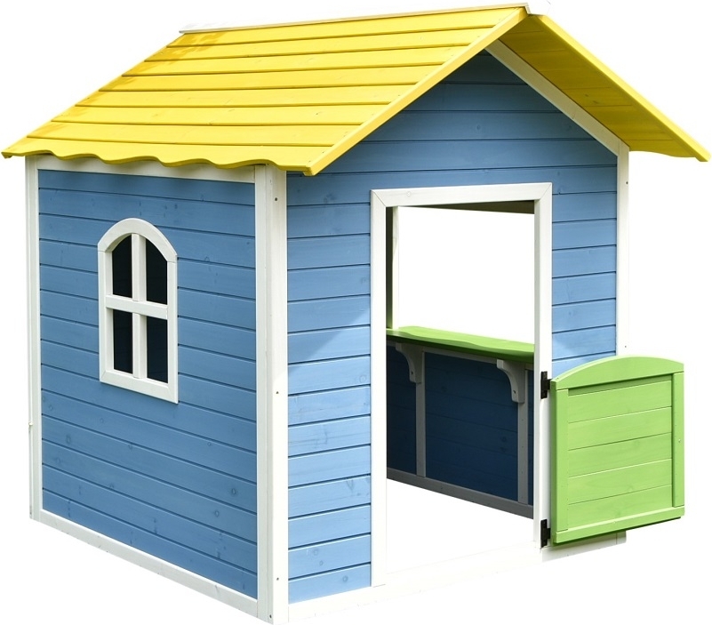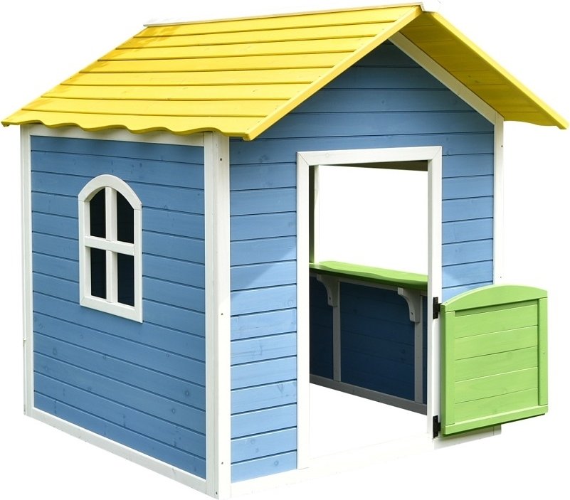 Dieses charmante Spielhaus mit weißen Knoten bietet Kindern einen fantasievollen Ort zum Spielen im Freien direkt im Garten. Durch die eingebaute Kiosktür können Sie Geschäfte machen, "Eis verkaufen" oder "Kaffee servieren". Die Hütte wird komplett in leuchtenden Farben gestrichen geliefert, die Kinder ansprechen und den Garten beleben, während das Spielhaus ein kompaktes Design hat, das nicht viel Platz einnimmt. Im Inneren können Kinder ihre Outdoor-Spielzeuge aufbewahren und stundenlang spielen.