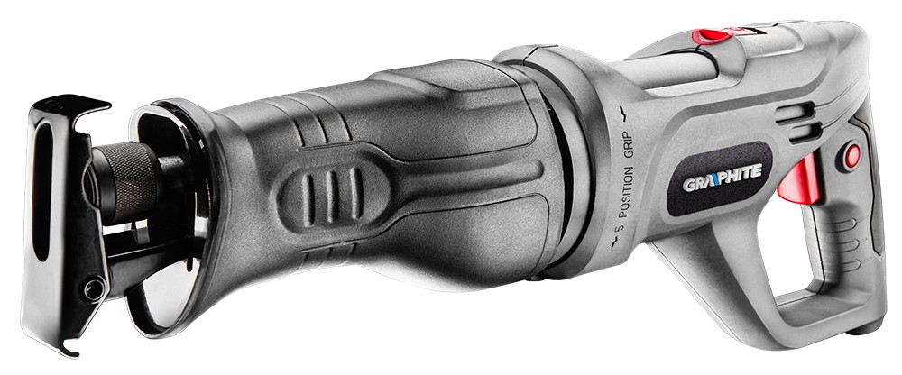 Spezielle Gattersäge mit 900-W-Motor, ausgelegt zum präzisen Schneiden von Holz, Metall und anderen Materialien unterschiedlicher Härte. Der Sägemechanismus des Werkzeugs ist mit verbesserter Festigkeit an Kugellagern befestigt.