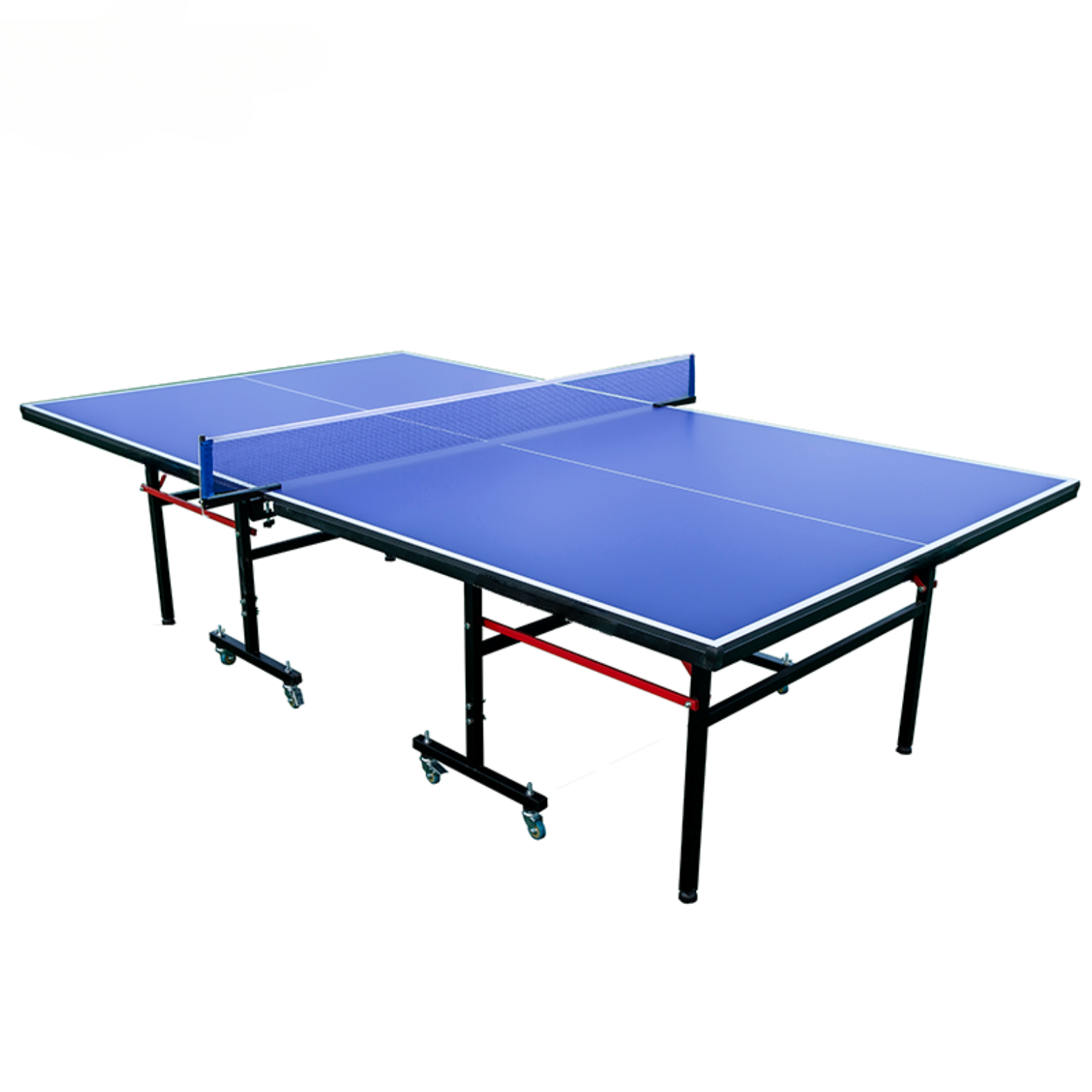 Tischtennisplatte mit 2 klappbaren Seiten und Rädern für einfachen Transport.