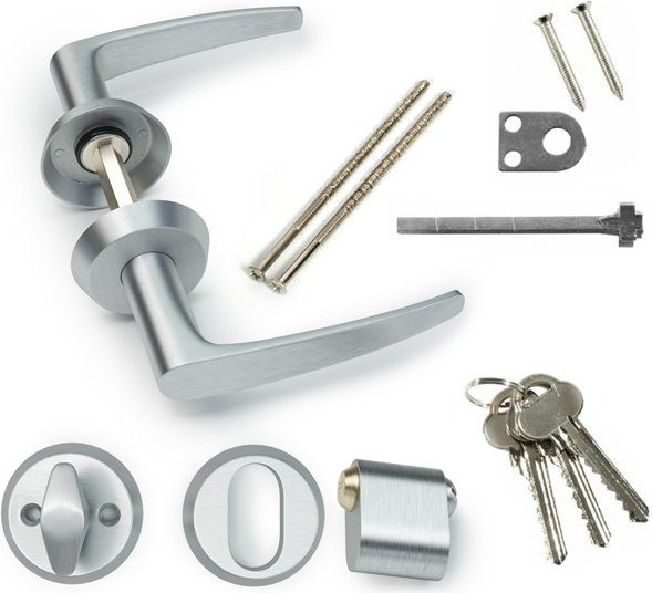 Griffe, Zylinderringe und Zylinder bestehen aus Zinkguss mit satinierter Chrombeschichtung. Passt gut dort, wo die Luftfeuchtigkeit nicht zu hoch ist. Wenn Sie beispielsweise in der Nähe des Meeres wohnen, sollten Sie nach einem Edelstahl- oder Messinggriff suchen.