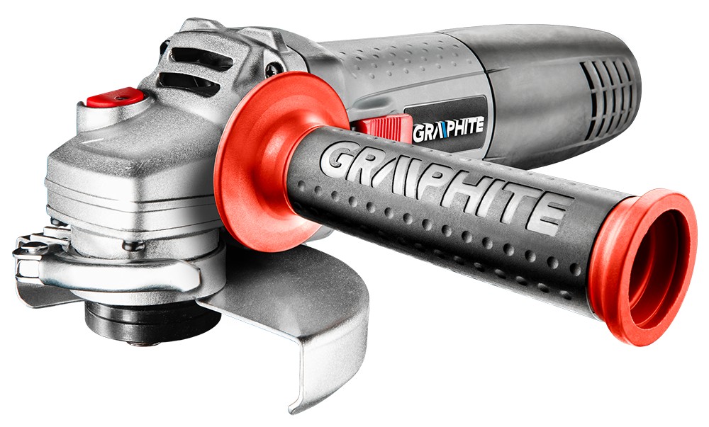 Aus Sicherheitsgründen ist der Winkelschleifer mit einem zweistufigen Knopf ausgestattet, der ein versehentliches Starten verhindert und die Spindelarretierung nicht aus dem Werkzeugkörper herausragt. Korrekt platzierte Lüftungsöffnungen schützen den Motor vor Überhitzung.