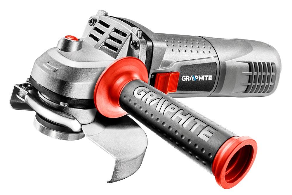 Aus Sicherheitsgründen ist der Winkelschleifer mit einem zweistufigen Knopf ausgestattet, der ein versehentliches Starten verhindert und die Spindelarretierung nicht aus dem Werkzeugkörper herausragt. Korrekt platzierte Lüftungsöffnungen schützen den Motor vor Überhitzung. Der Seitengriff kann in zwei Positionen fixiert werden.